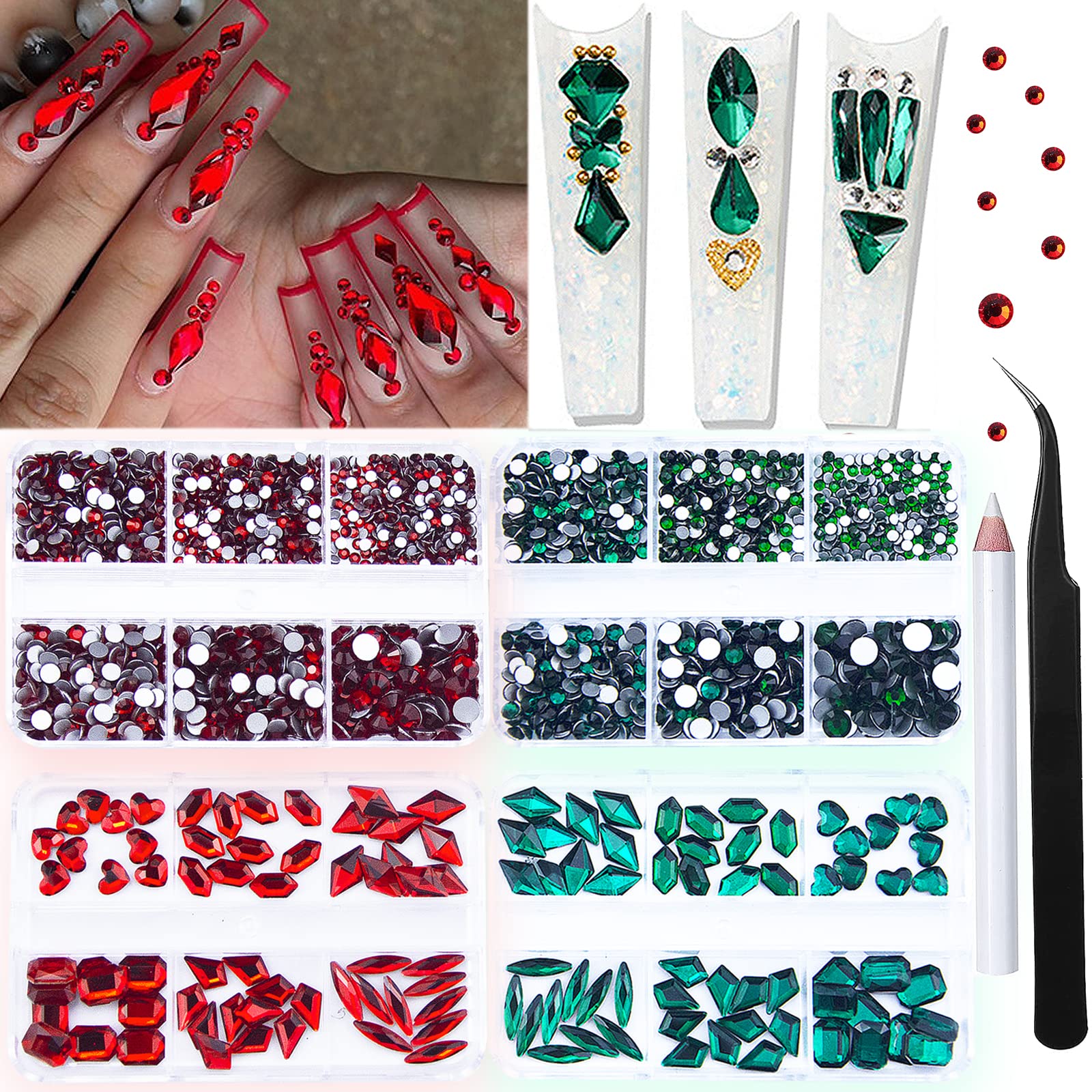 - Original Rhinestones & Decorations – 2120Pcs Emerald Green Red Nail Rhinestones Crystals Glass Gems Stones Green Red Multi Shapes Sizes Round Beads Flatback Crystals Rhinestones for Nail DIY Crafts Clothes Shoes Jewelry by Tatiwoo