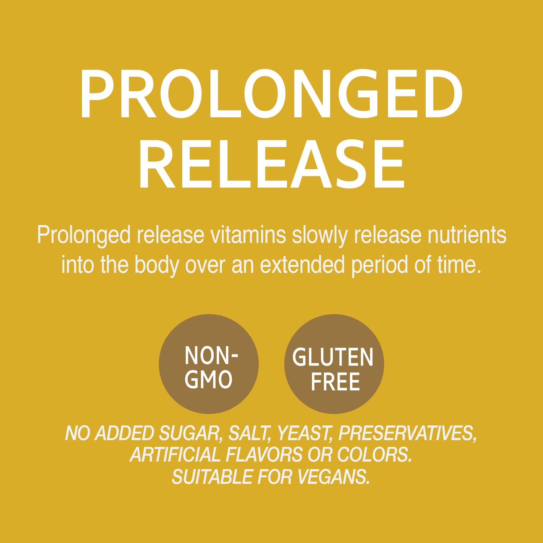 - Prolonged release vitamins slowly release nutrients into the body over an extended period of time.