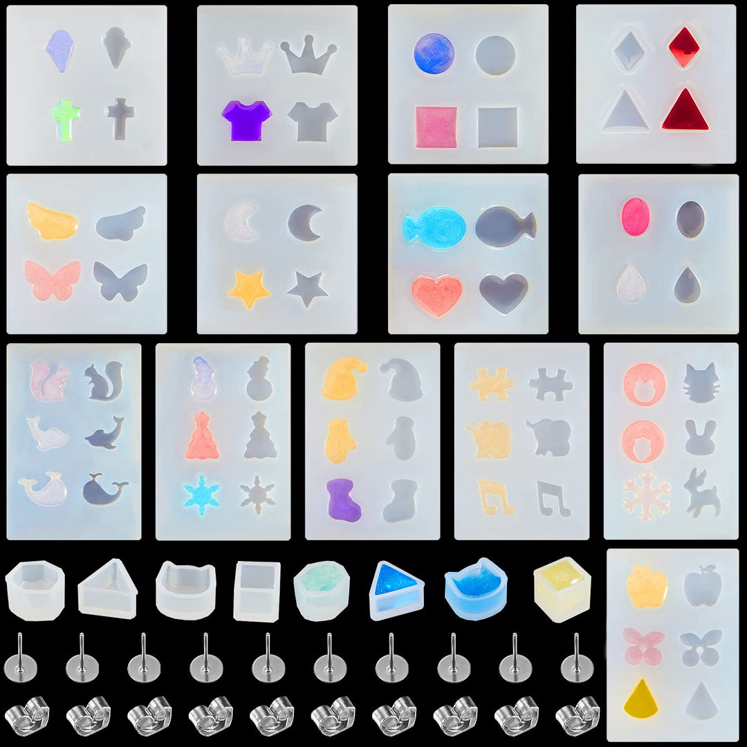 - Ample making set: the package brings you 14 pieces ear stud and earring resin moulds with various patterns, 8 pieces ear stud resin moulds in different styles, 50 pieces stainless steel ear studs and 50 pieces earring backs, which allow you to make or DIY your own ear studs to match with your daily outfits and enough for you to choose