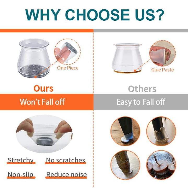 - [The felt pad Never fall off]-Our upgraded silicone chair leg covers are equipped with felt pads, and we combine the felt and the silicone into one inseparable piece!Latest upgrade!