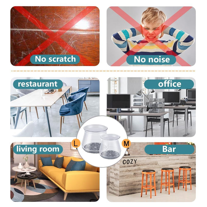 - [Adapted to every kind of shape]you don`t have to consider the shape of your chair foot. For example, restaurant chairs, bar stools, terrace chairs, kitchen chairs, metal bistro chairs.