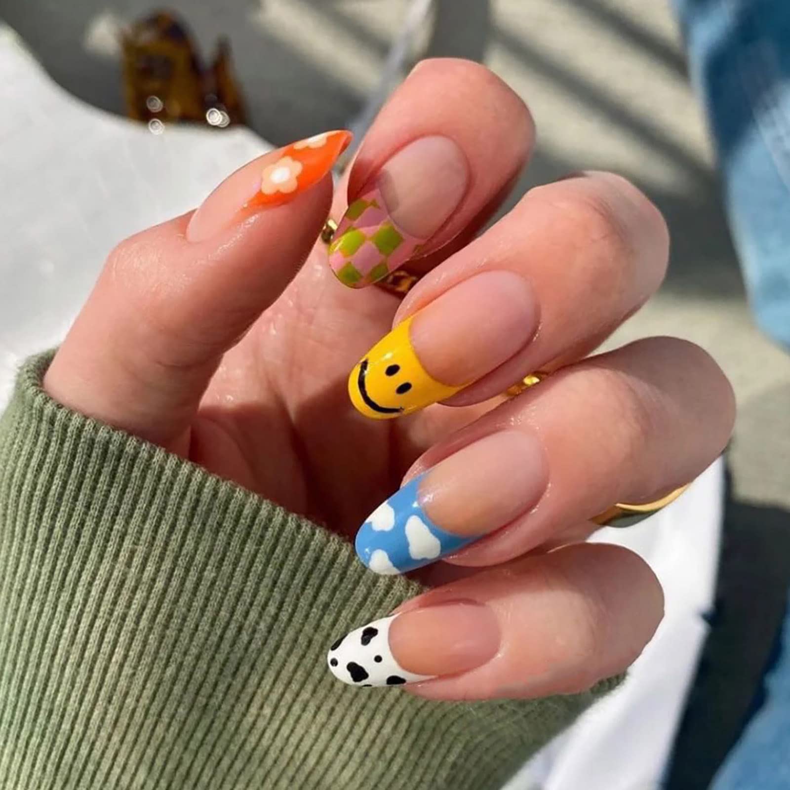 - Original Artificial Nails – 24 Pcs Press on Nails Medium Length, Fake Nails Almond Glue on Nails, Stiletto False Nails with Glue, Acrylic Nails for Women and Girls (Colorful Stiletto) by Sunjasmine