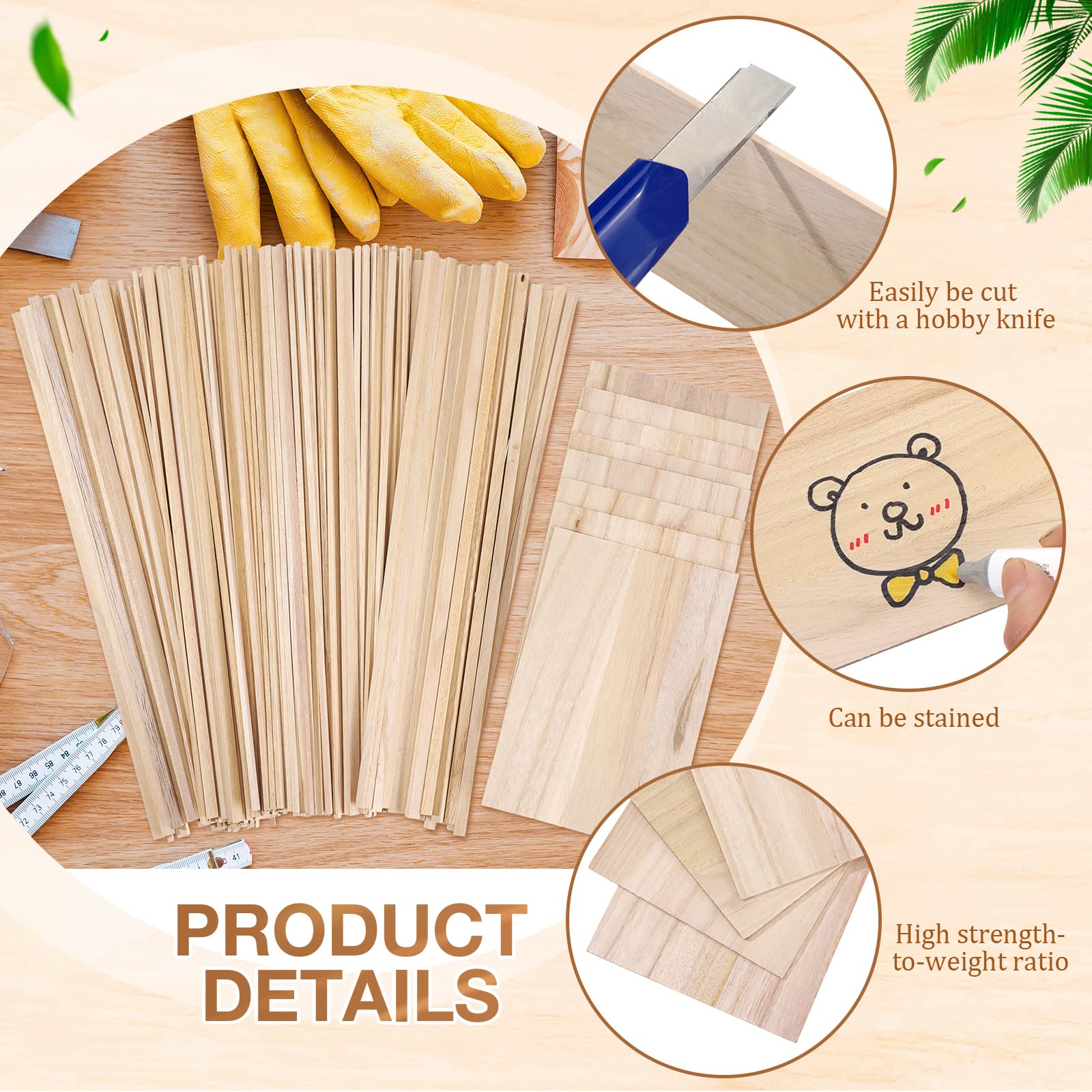 - Original Unfinished Wood – 240 Pieces Balsa Wood Sticks Hardwood Square Wooden Craft Dowel Rods Unfinished Balsa Wood Sheets 12 Inch Thin Wooden Strips 1/4 Inch 1/8 Inch for DIY Molding Crafts Projects Making by Chunful