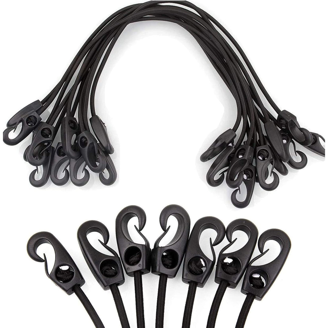 - WIDE APPLICATIONRubber tarp straps is perfect to keep in your rucksack at all times when on any outdoor activity; Bungee cords is suitable for tarp tie downs, ground sheets, tarpaulin, boats, roof racks, hand carts, camping, bike, motorcycle, trailers, car, cargo, luggage rack, caravans and many other general use