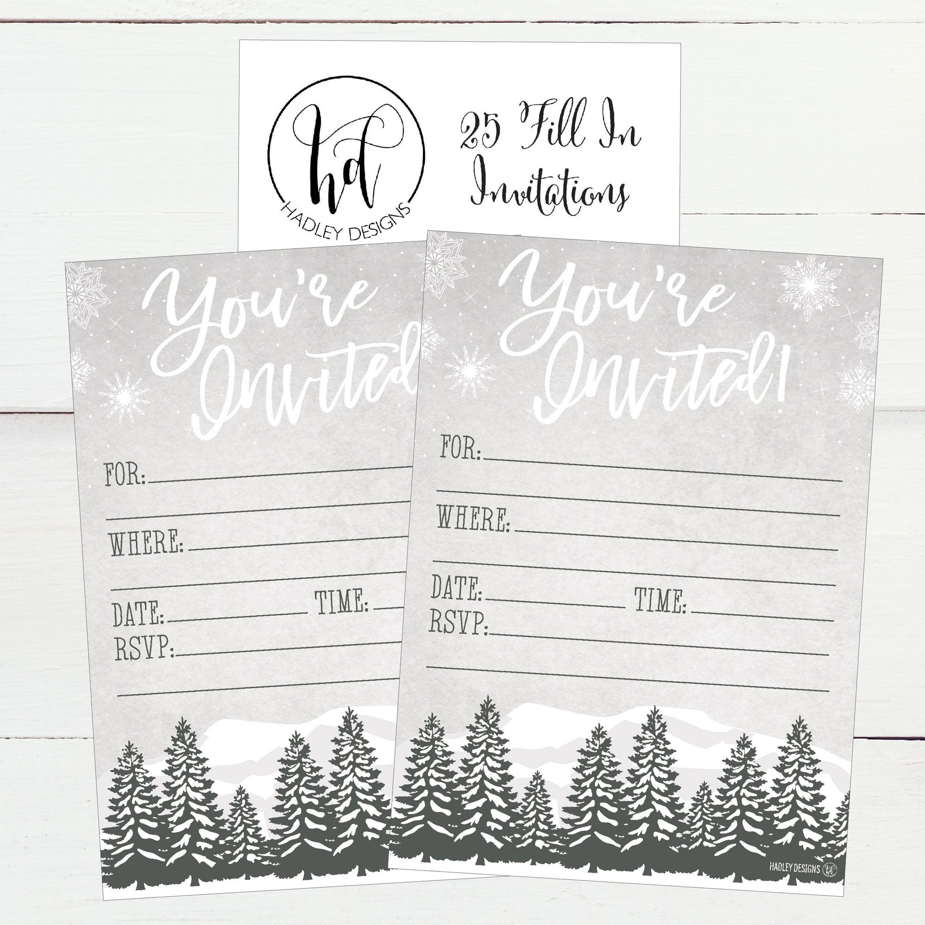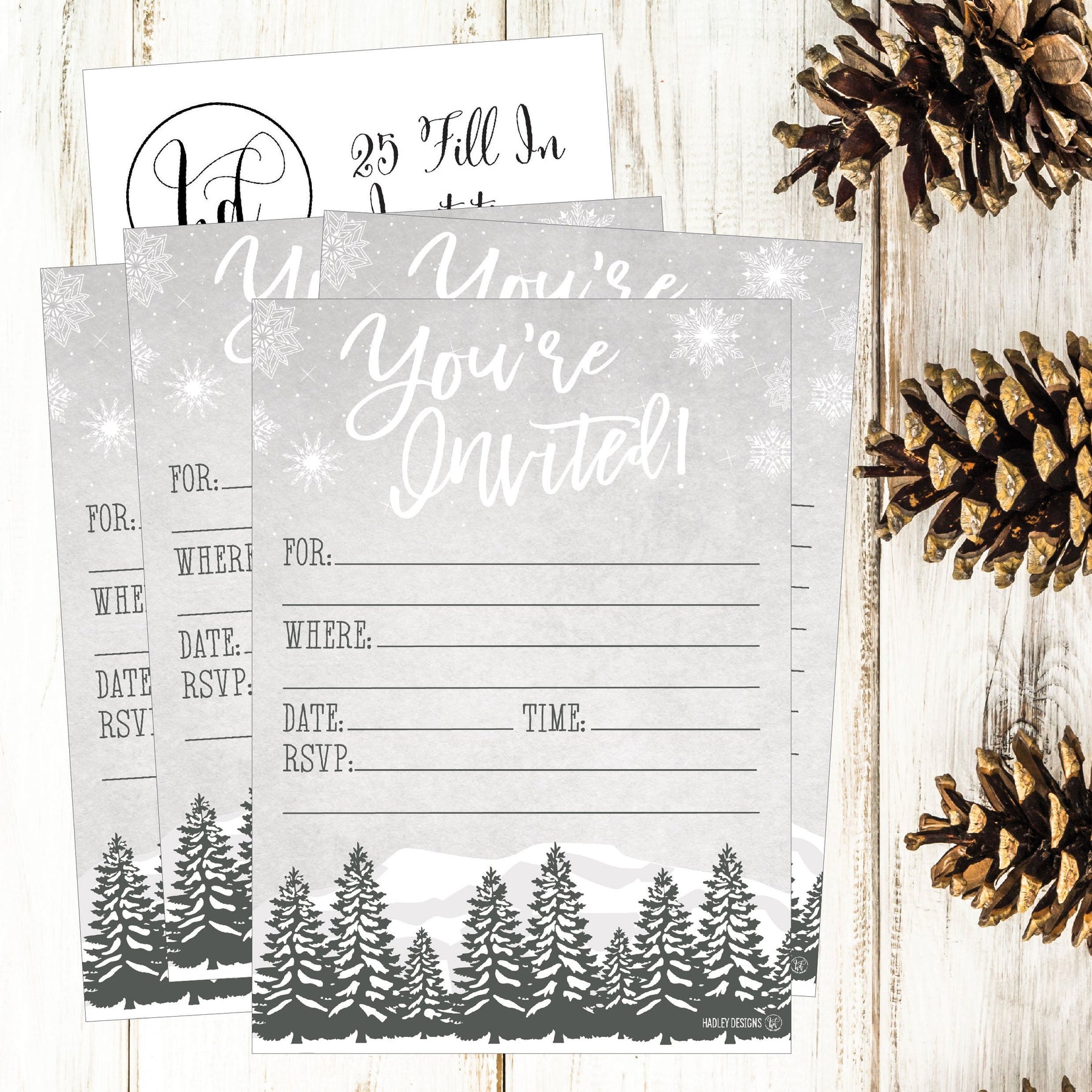 - Original Invitations – 25 Woodland Christmas Holiday Invitations, Snowflake Winter New Years Bridal Or Baby Shower Invite Adult Kids Birthday Invitation Wedding Rehearsal Dinner Invites, Reception Anniversary, Housewarming by Hadley Designs