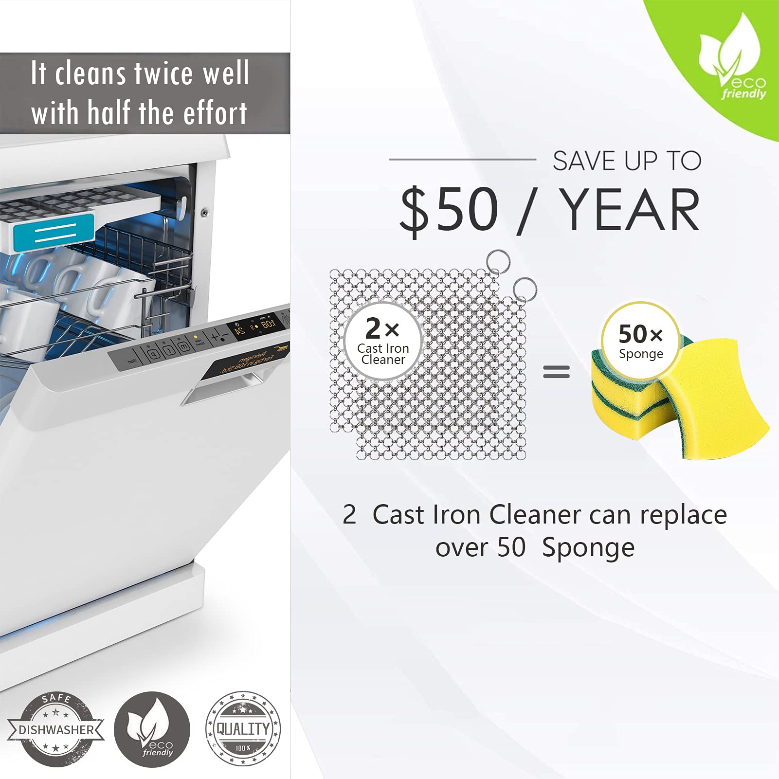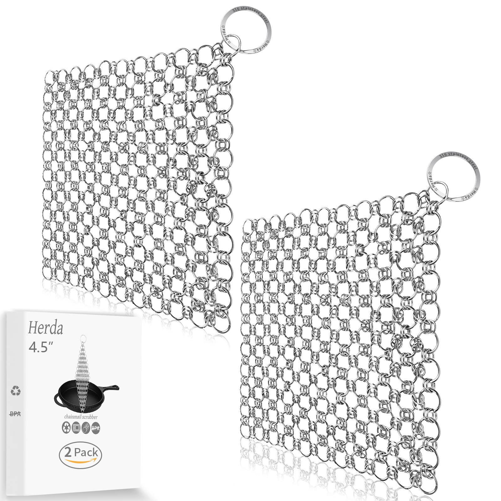 - Original Dish Scouring Pads – 2Pack 4.5inch Stainless Steel Cast Iron Cleaner, Chainmail Scrubber for Pre-Seasoned Pan Pot, Iron Skillet Chain Link Cleaning, Clean Dutch Ovens, Waffle Grills & Griddle Pan Easily, Metal Scrub Tool by Herda