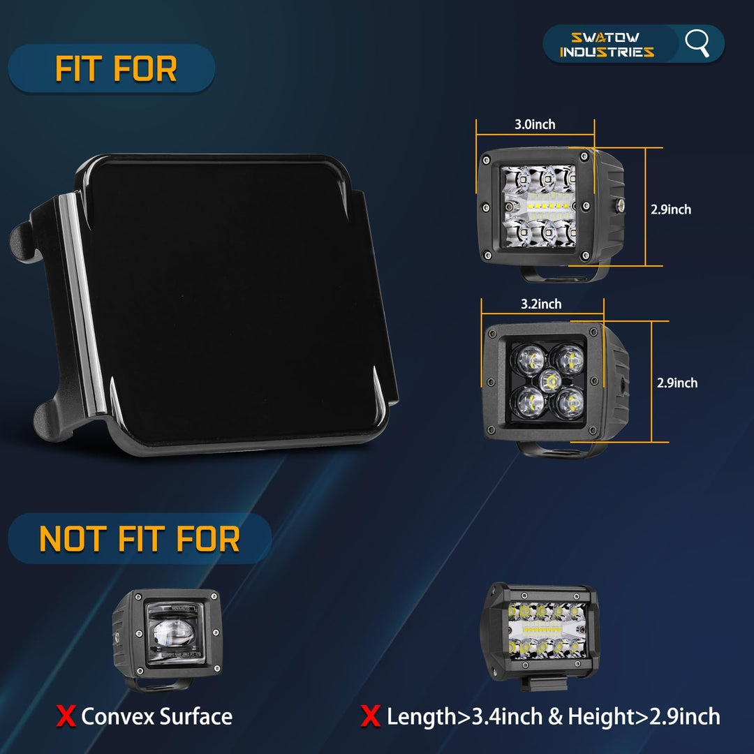 - MAKE SURE SIZE - Fit for 3x3 square work lights. Please check the size of the light cover in image # 2 and image # 3 to ensure that your light is suitable. [ONLY APPLICABLE TO FLAT SURFACES]