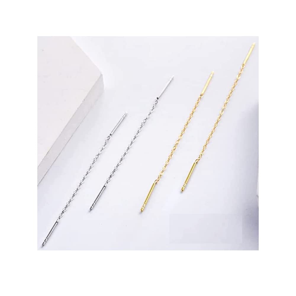- Total length: 2 inch, dangle bar ~ 11mm long ( ~ 0.4 inch); chain width ~ 0.8mm (~ 0.031 inch or 20 gauge) - Light Weight, Cute, but strong and durable box chain design, Standard Size Ear Threader, Easy to Put into the Ears