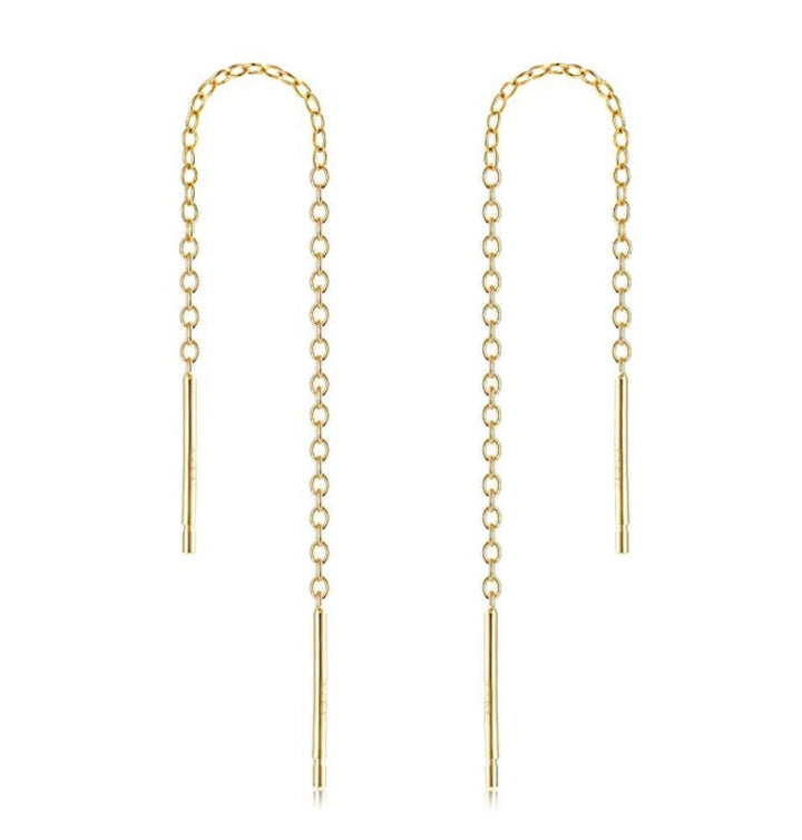 - (2pcs = 1 Pair) Premium Modern Youthful Look Jewelry Make a modern youthful statement with delicate real gold plated sterling silver threader earrings embellished with a cute bar drop; glistening sterling silver cable chain create a stunning look in these earrings