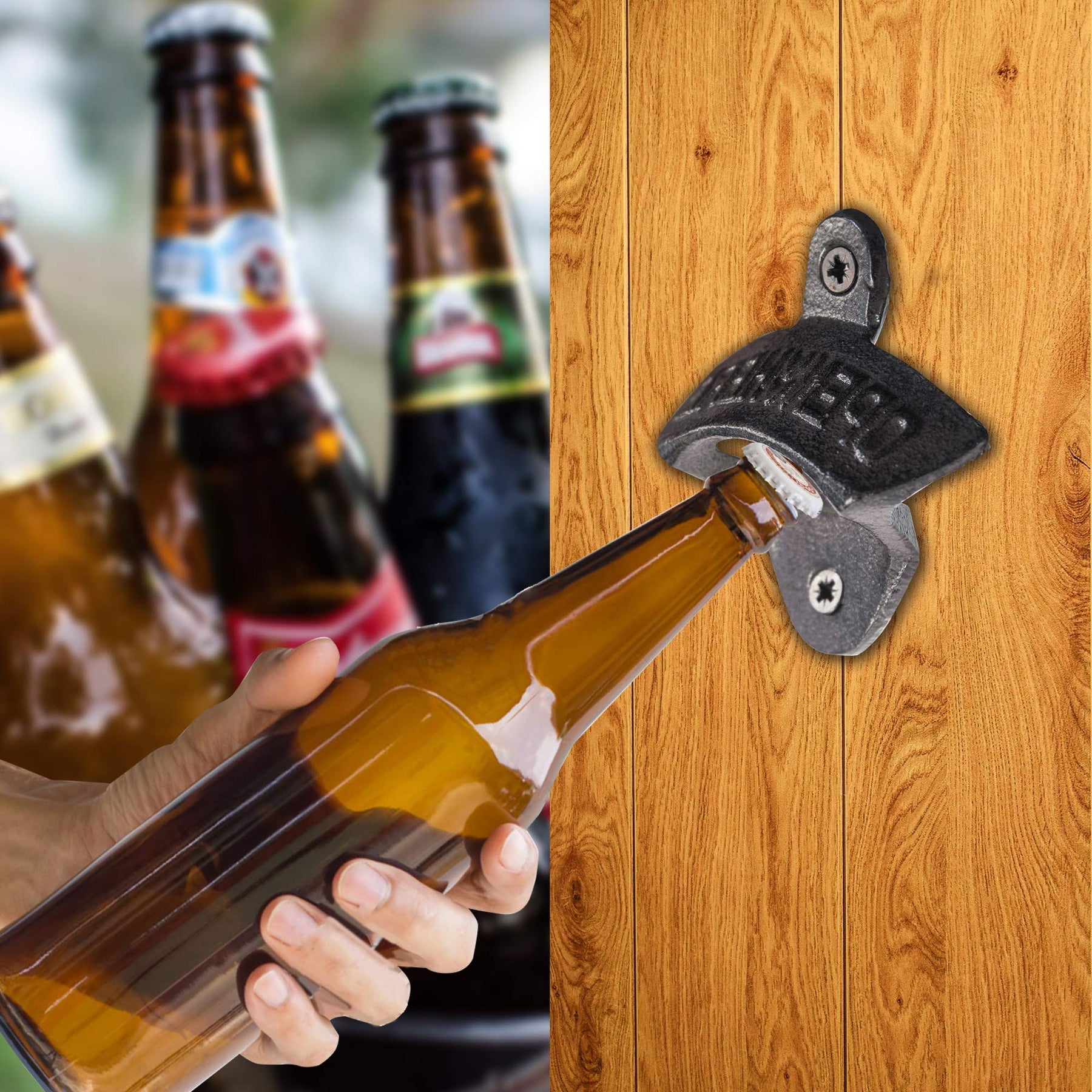 - HELP FOR YOU - Taking bottle caps off effortlessly in leverage and save your time for finding small opener, wall-mounted bottle openers are more convenient