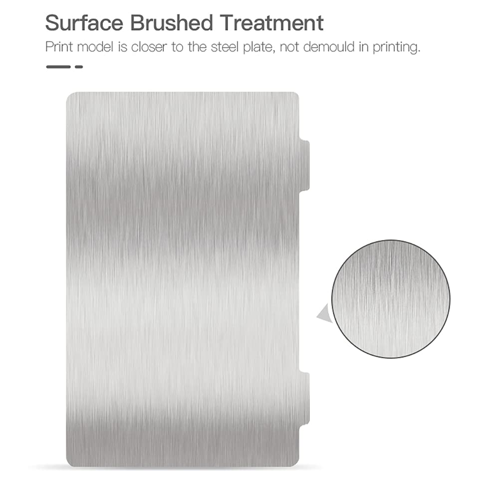 - Made from Spring steel material and size 138x85x0.4mm, Surface Brushed treatment, Print model is closer to the steel plate, easy to remove printed model and Not demould in printing.