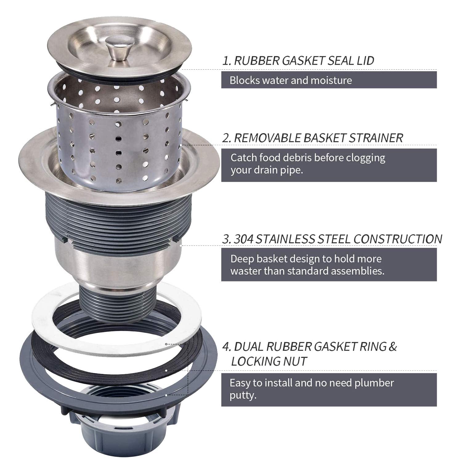 - Original Drains & Strainers – 3-1/2 Inch Sink Drain Assembly Kit, Removable Deep Sink Strainer Basket with Sink Stopper/Sealing Lid for Home, Kitchen, Stainless Steel by KONE
