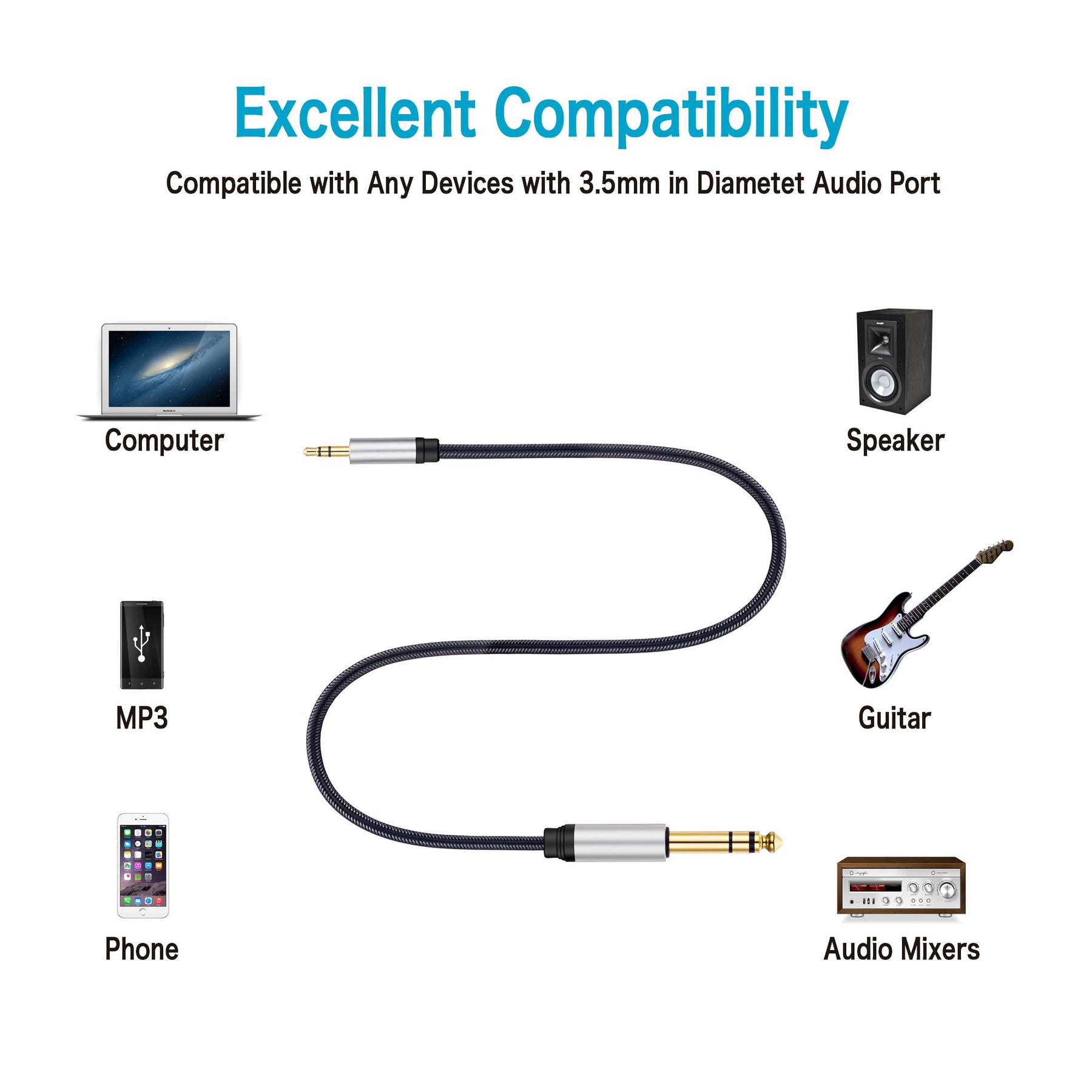 - Original Stereo Jack Cables – 3.5 mm to 6.35 mm Audio Cable 12Ft, Gold-Plated Terminal Silver Color Zinc Alloy Housing 3.5mm 1/8 Male TRS to 6.35mm 1/4 Male TRS Nylon Braided Stereo Audio Cable for Cellphone, Amplifiers(12Ft/4M) by Jelly Tang