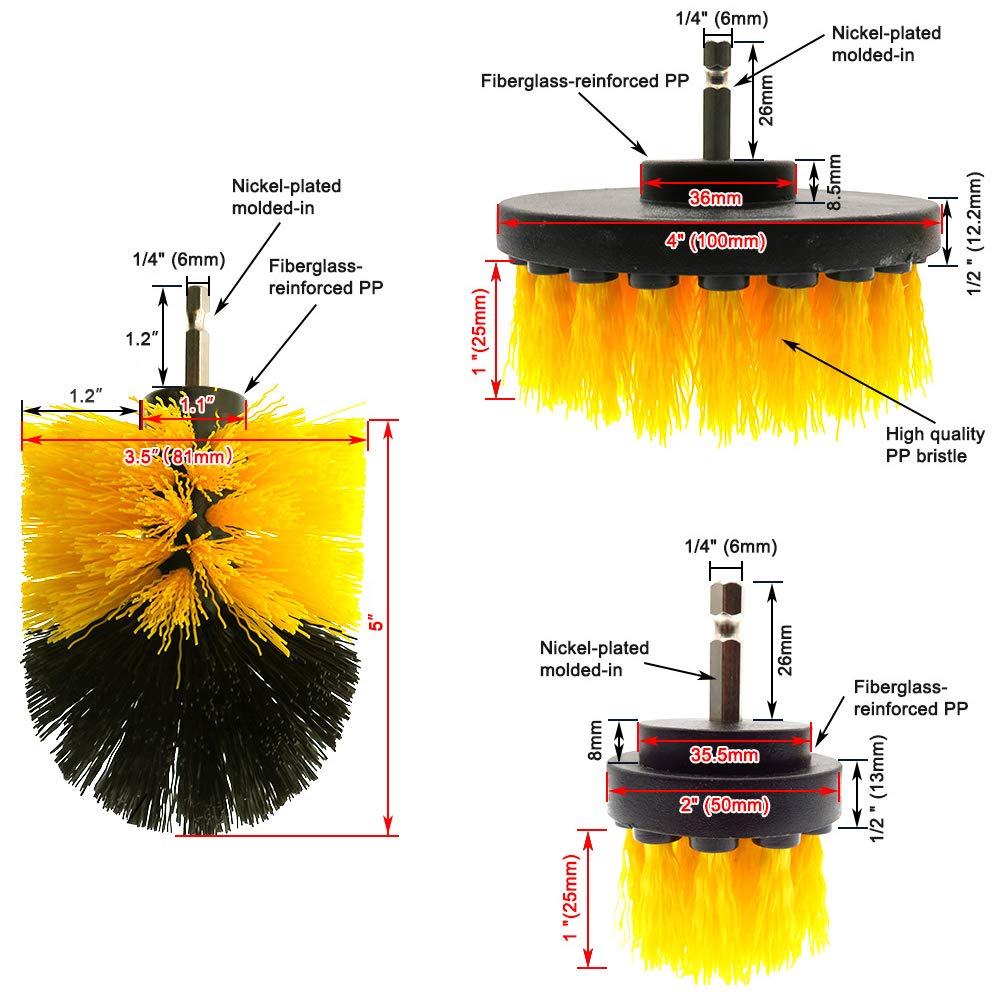 - Broad Range of Applications3 shapes of drill brush power scrubber can be used to clean your floor mats, wheel, car carpet, bathtub, grout, bathroom surface, tile, and shower, etc. The 1/4 inch connectors of these brushes can be used on hand-held tool for rapid changing of components.