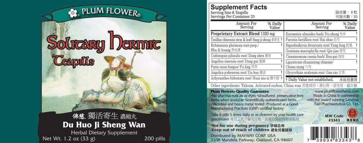 - Original Dietary Fibers – 3 Pack of Solitary Hermit Teapills, Du Huo Ji Sheng Wan, 3 x 200 Pills by Plum Flower