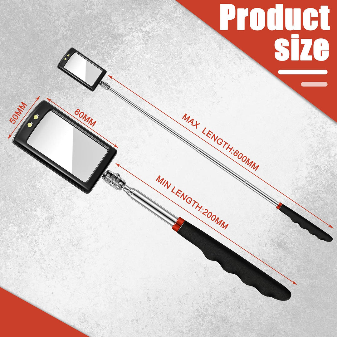 Suitable for tool manufacturers, mechanics, inspectors, dentists, makeup artists and mechanics to enter areas, corners and crevices that are difficult to reach; The telescopic rod is easy to extend and retract, and the rotating neck mirror allows you to adjust the position of the mirror and observe each small area.