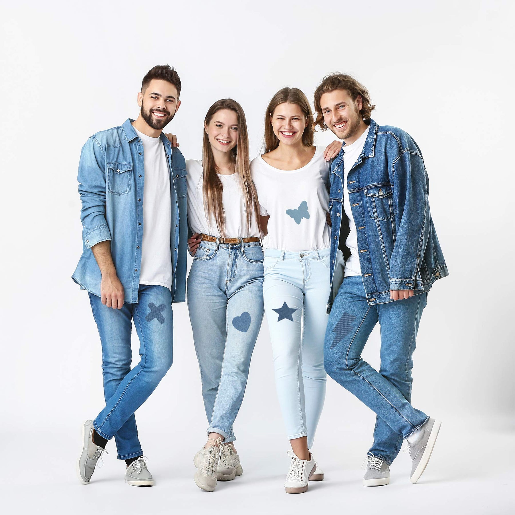 - Save your jeans and decorate your clothes. The inner thigh of the jeans has holes, cracks or wear, and the jeans are pasted with patches. Besides, do you want to add a little freshness to an old pair of trousers These pieces of iron are the perfect solution!