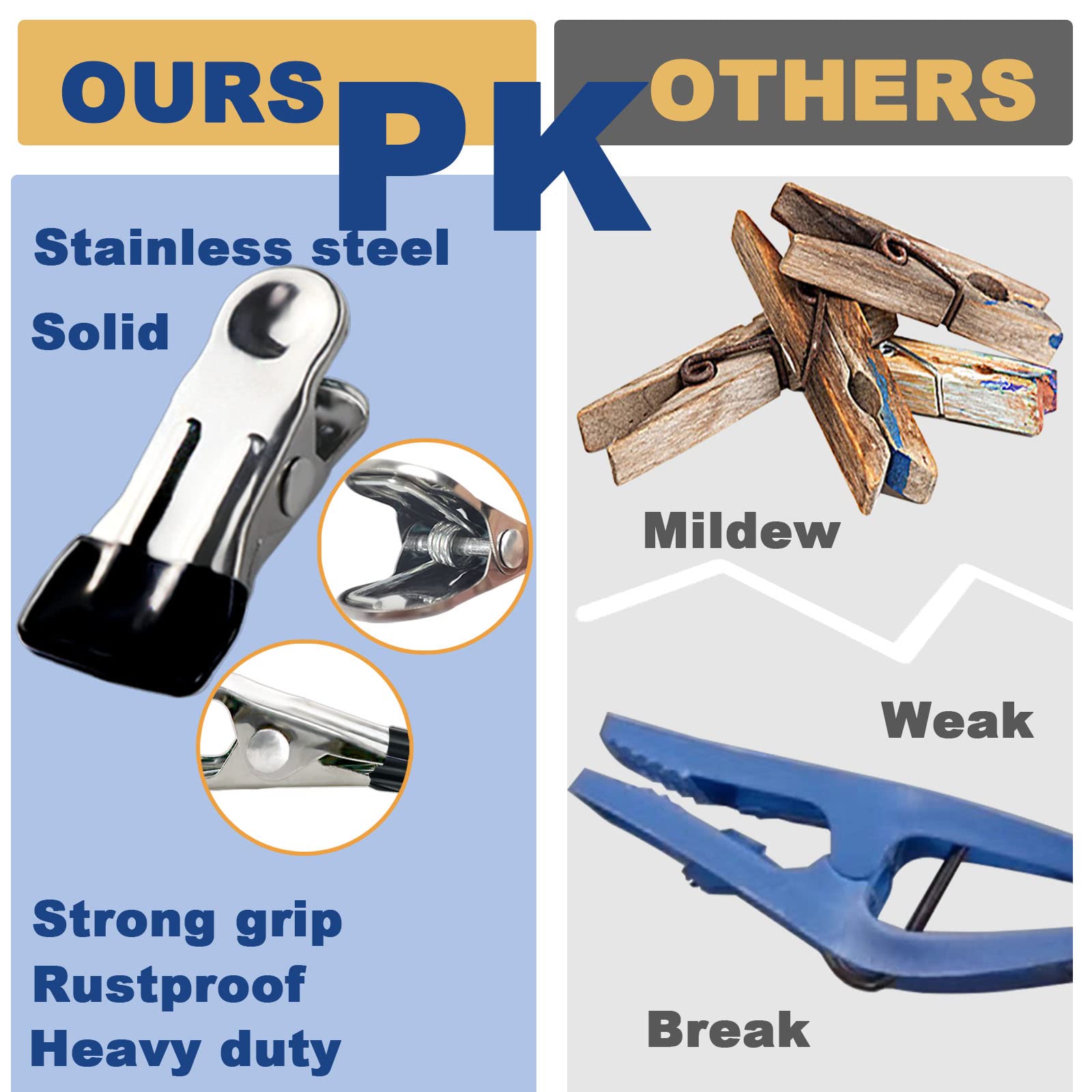 - Super Strong Grip:These clip have a super strong grip, the coating that doesn’t snag fabric. It won’t break or deform even with heavy objects,Clamp the wet towel stay secure even on windy days,this can't be done with wooden clamps