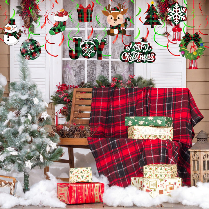 - Original Streamers – 30 Pieces Christmas Hanging Foil Swirl Decorations Set Xmas Holiday Snowman Elk Sign Hanging Swirls Ceiling Decorations for Indoor Outdoor Happy Christmas Holiday Party Decor (Red, Black) by Sumind
