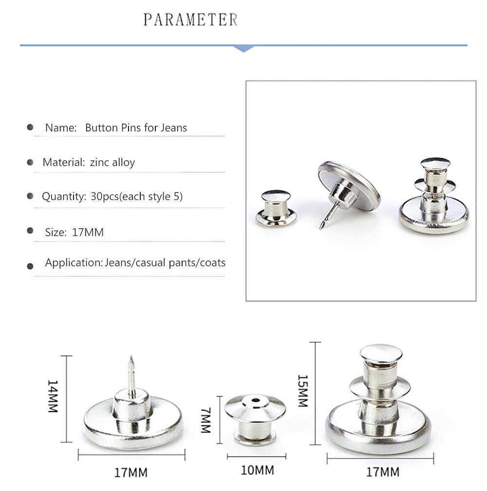 - Original Buttons – 30pcs Button Pins for Jeans,6 Style Jean Button Pins Instant Buttons Jean Button Adjustable Jean Button Pins for Adjusting Waist. by Loohfly