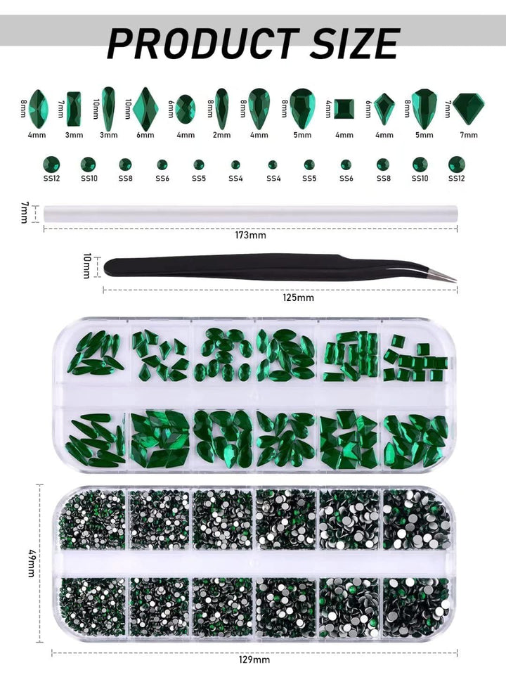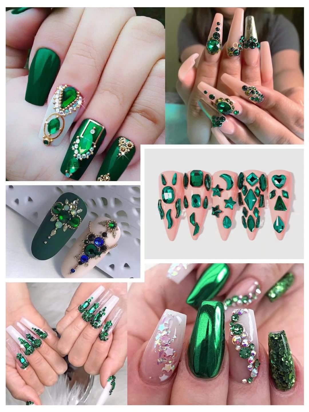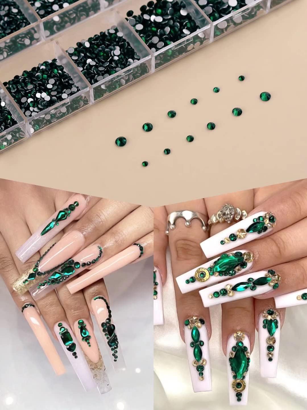 - Original Categories – 3120 Pcs Green Nail Art Rhinestone Gems Kit Nail Art Crystal Flat Back Nail Diamond Jewels with Tweezers and Drill Pen by EBANKU