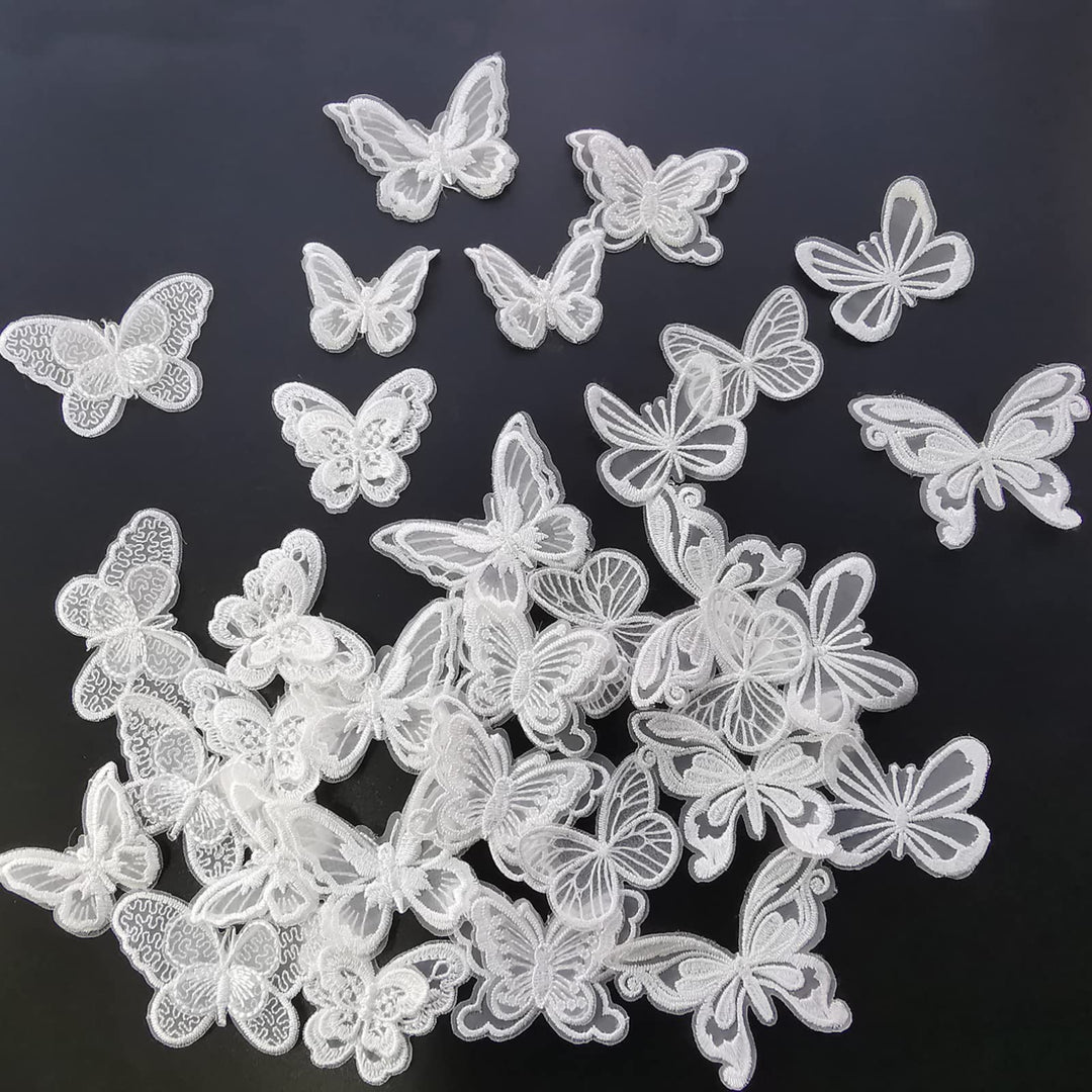 - Original Lace Appliqué – 32 Pcs White Lace Butterfly Applique Embroidery,Organza Butterfly Patches Appliques for Clothes,for Wedding Bridal Dress Craft DIY Clothes Hair Ornaments Dress/Hat/Bag Decoration by Fasheen