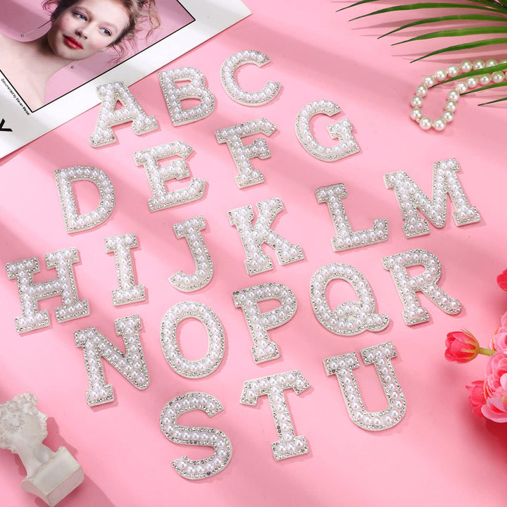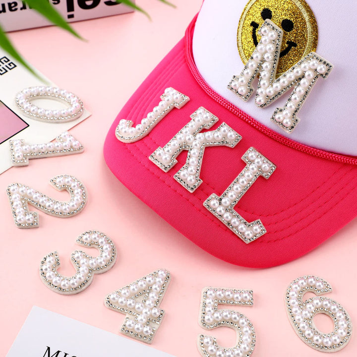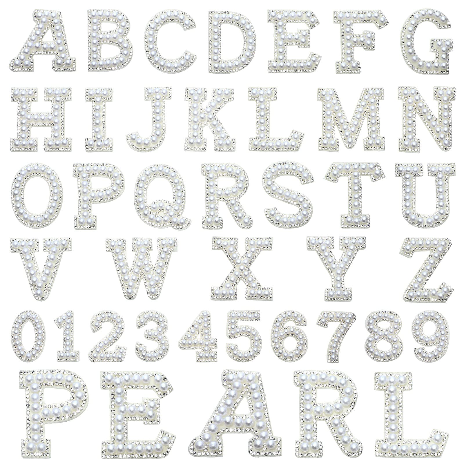 - Original Iron-on Transfers – 36 Pieces Iron on Letter A-Z 0-9 White Pearl Rhinestone Chenille Letter Patches Iron on Glitter Alphabet Number Bling Patches Decorative Repair Patches for Fabric Shirts Crafts Clothing DIY Decor by Juinte