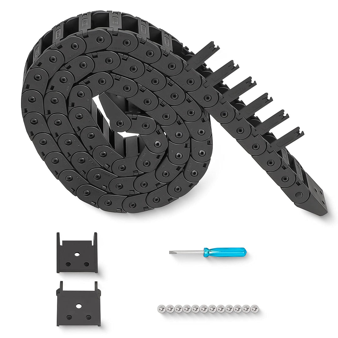- Extra Extra one pair connector, can split the integral drag chain into 2 pieces to use; Extra 12pcs screws, easy to fix the chain; Extra Screwdriver, freely disassemble to change the length of the chain and open the side cover of it.