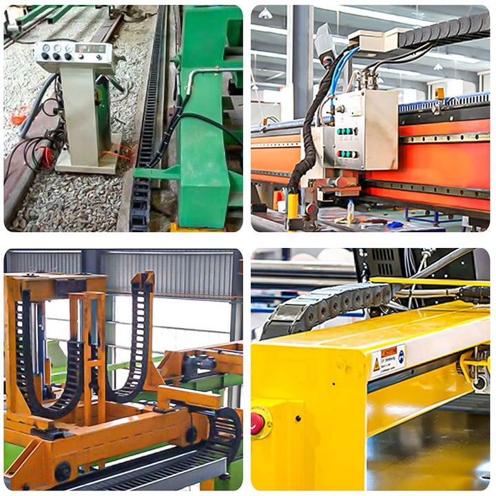 - Multi-ApplicationsThe black plastic drag chain cable carrier is suitable for the occasions of reciprocating motion, tow and protect the built-in electric cable, oil pipes, gas pipes, water pipes. It has been widely used for CNC machine tools, electronic equipment, stone machinery, glass machinery, doors and windows machinery, Injection molding machine, manipulator, lifting and transportation equipment, Automated warehouses etc.