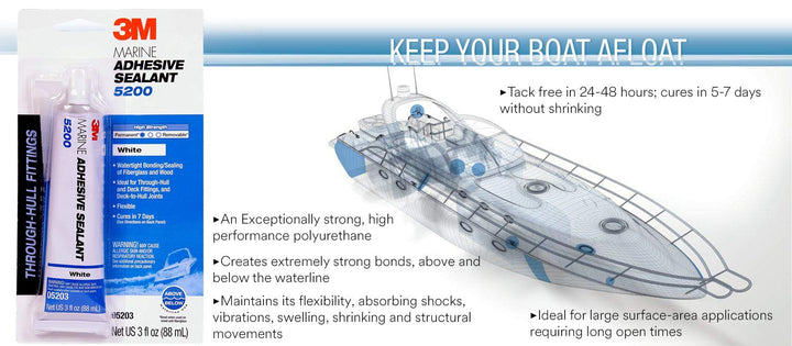 - Original Adhesives – Marine Adhesive Sealant 5200 (05203) Permanent Bonding and Sealing for Boats and RVs Above and Below the Waterline Waterproof Repair, White, 3 fl oz Tube by 3M