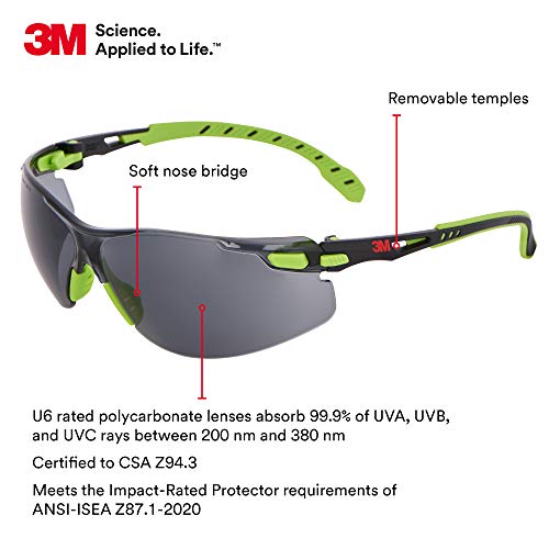 - Original Safety Glasses – Safety Glasses, Solus 1000, S1202SGAF, ANSI Z87, Scotchgard Anti-Fog, Gray Lens, Green/Black Frame, Padded Temple, Soft Nosebridge, UV Protection, Premium Eye Protection by 3M