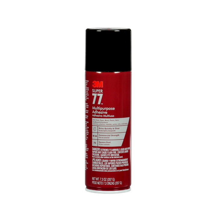 - Original Adhesives – Super 77 Multipurpose Spray Adhesive, 7.3 oz., Provides Secure Bond In 15 Seconds, Dries Clear, Ideal For Plastic, Glass, Paper, Fabric, Wood, Foam, Cardboard, Fiberglass & More (77-10) by 3M