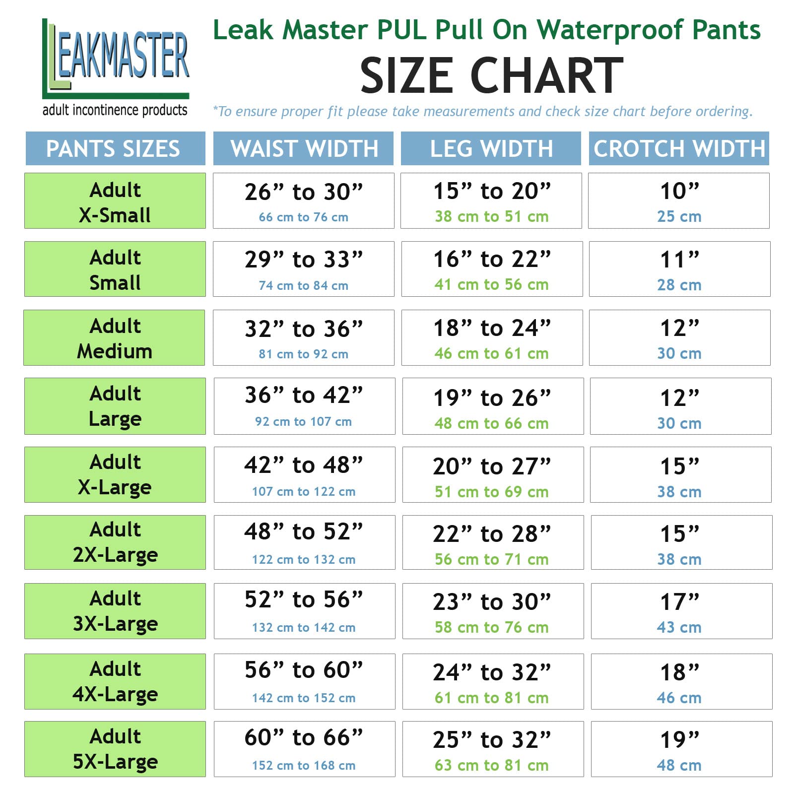 - Leakmaster 3x-large fits 50-58 inch waist. : leakmaster - adult pul waterproof pants- comfortable, quiet and effective adult diaper pant for men or women made of quality poly urethane laminat