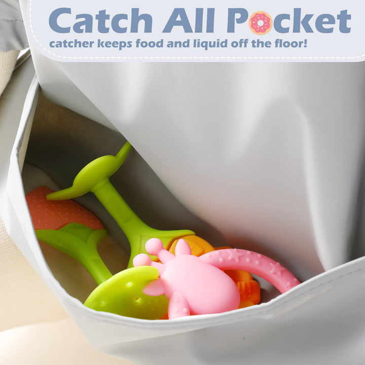 - Large Pocket Design: the baby bibs have a large food catcher, can catch many falling foods, crumbs and so on when babies are eating, can also be applied as a pocket to store some snacks, candies, cookies when babies go out; And the stretch cuffs are soft to wear, which can keep food from seeping into baby's clothes