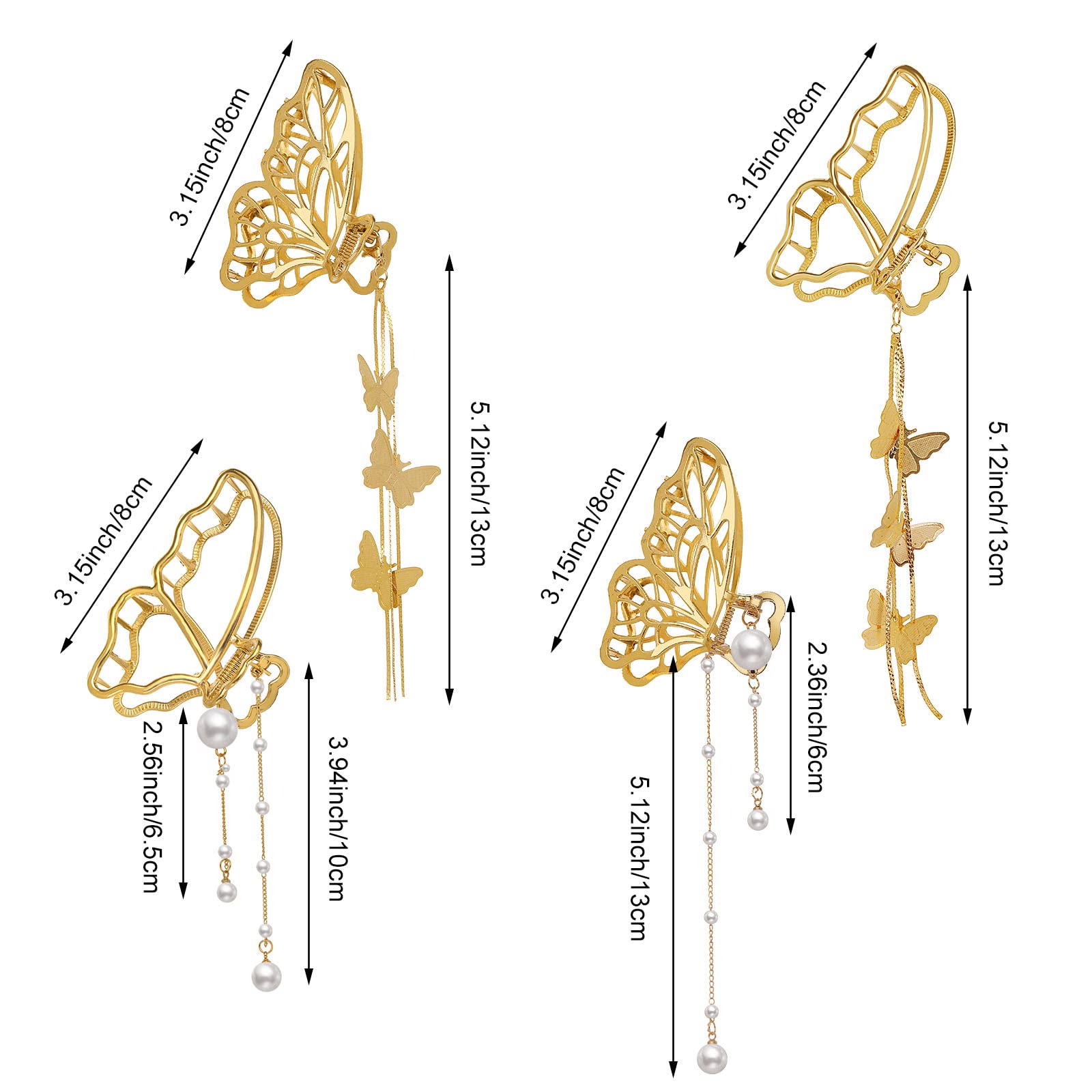 - Original Clips – 4 PACK Metal Big Gold Butterfly Hair Clips Clamp Tassel Nonslip Hair Claw Hair Accessories for Women Girls for Thinner Thick Hair Styling Fashion Hair Supplies by DonLeeving