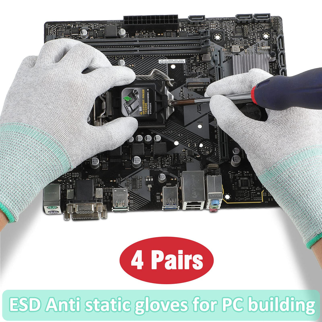 - Original Safety Work Gloves – 4 Pairs ESD Anti Static Gloves, PC Gloves with High Resistance Carbon Fiber Anti-static Gloves for PC Building Computer Electronics Installation and Repair (Medium) by Geyoga