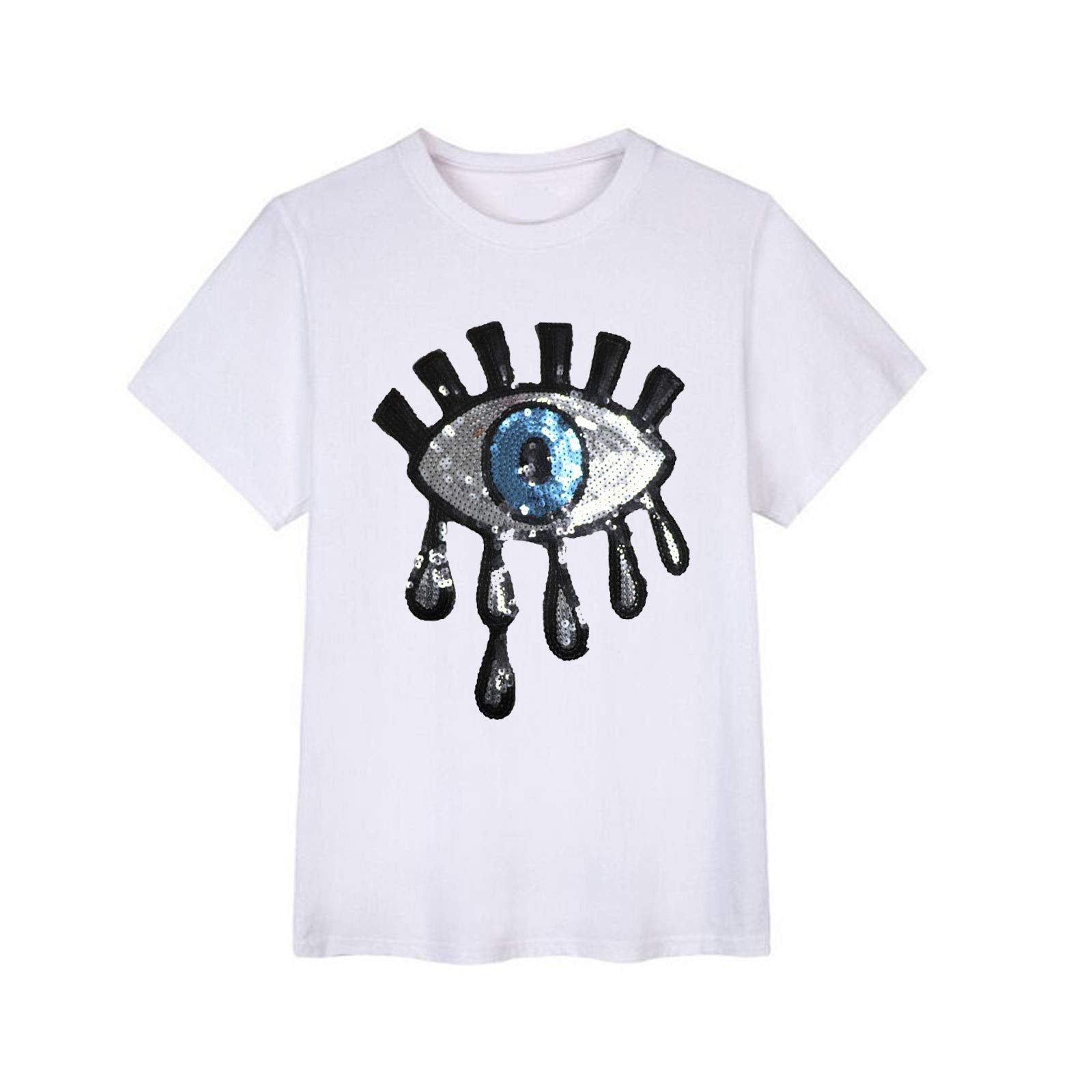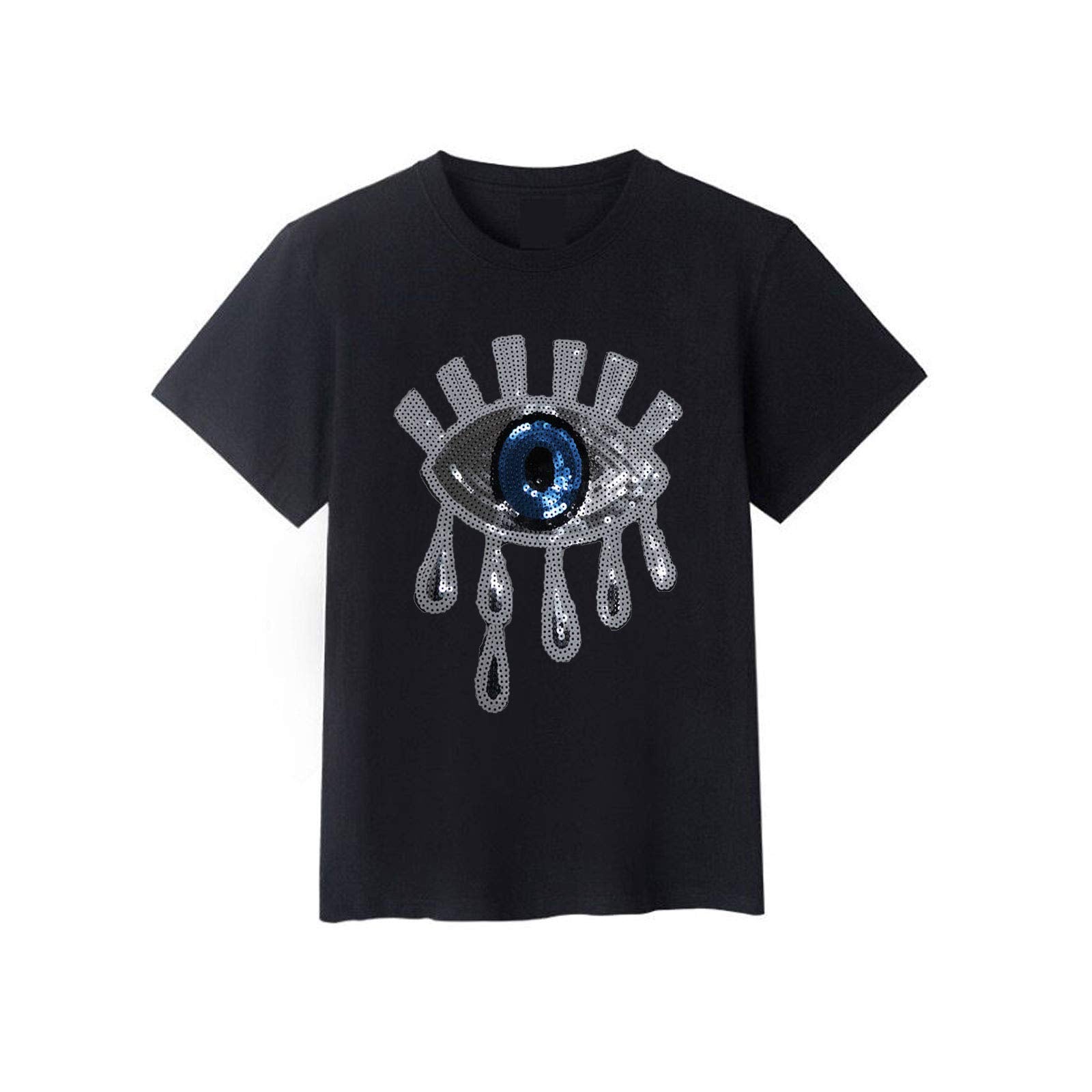 - Original Embroidered Appliqué – 4 Pieces Large Blue Eyes Iron on or Sew on Blue Sequins Patches Embroidered Sequins Glitter Punk Patches for Clothing Jeans T-Shirt DIY Motif Applique(Silver, Gold, Purple, Black) by Gewene