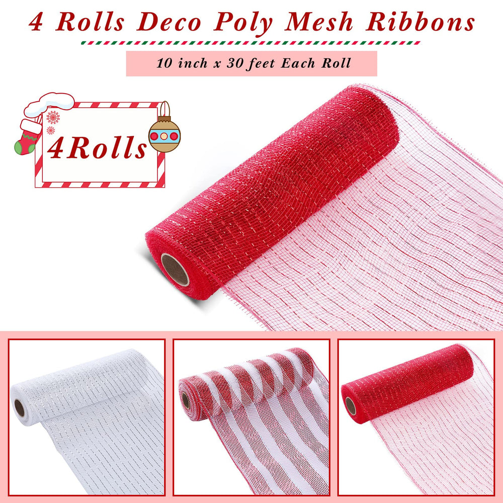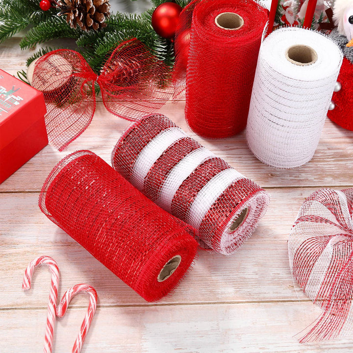 - Original Ribbons – 4 Rolls Mesh Ribbon, Metallic Foil Mesh Ribbon Metallic Mesh Ribbon for Door Wreath DIY Crafts Making Supplies (Red White,10 Inch) by Chuangdi