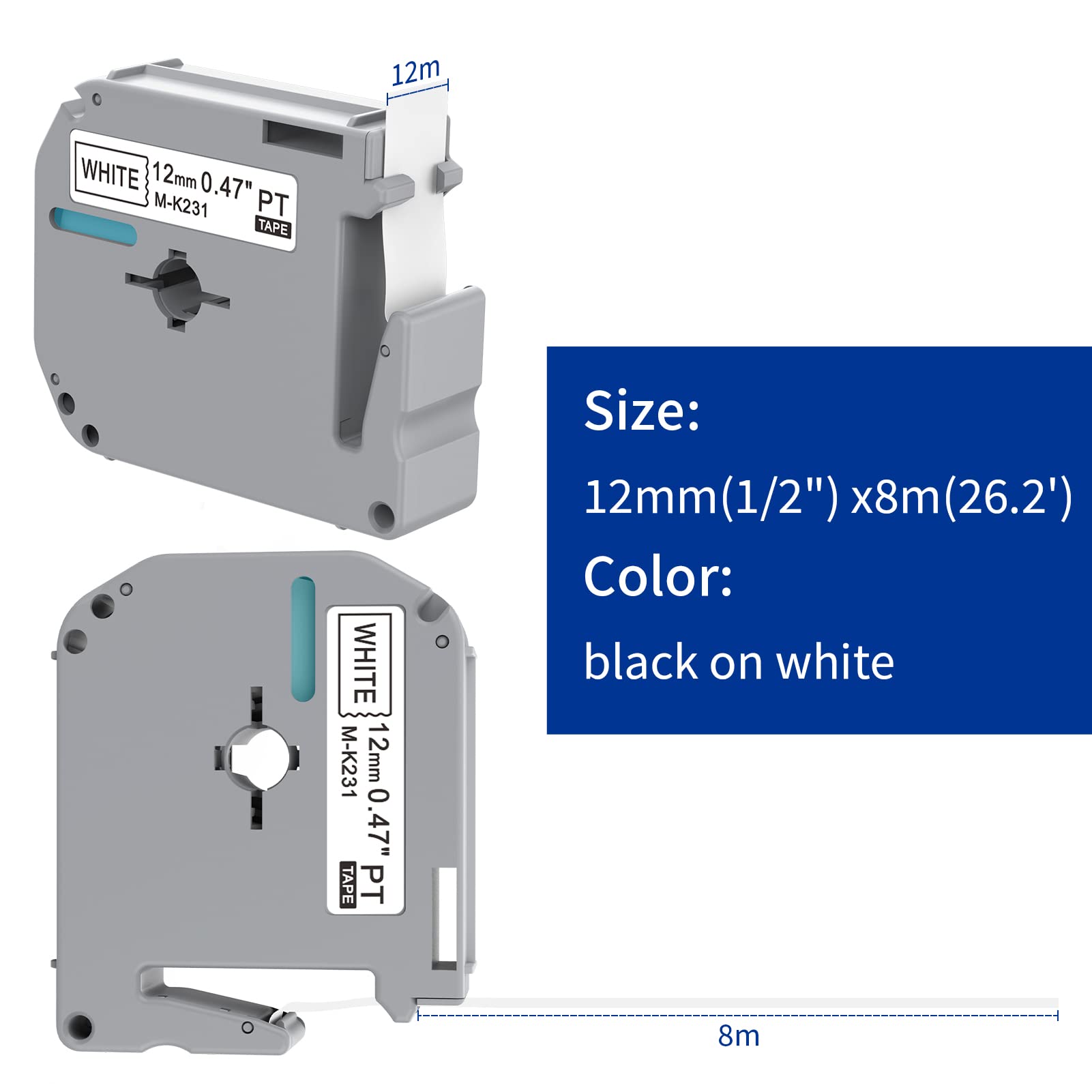 - [Durable & Non-fading] P PUTY Refills Replacement for M-k231 Brother Label Tape, Waterproof, Oil-proof and Friction-resistant, Recommended for Indoor Use, Thermal Labels Ensure that Printed Content is Easy to Identify and Will Not Fade Even After Long Storage.