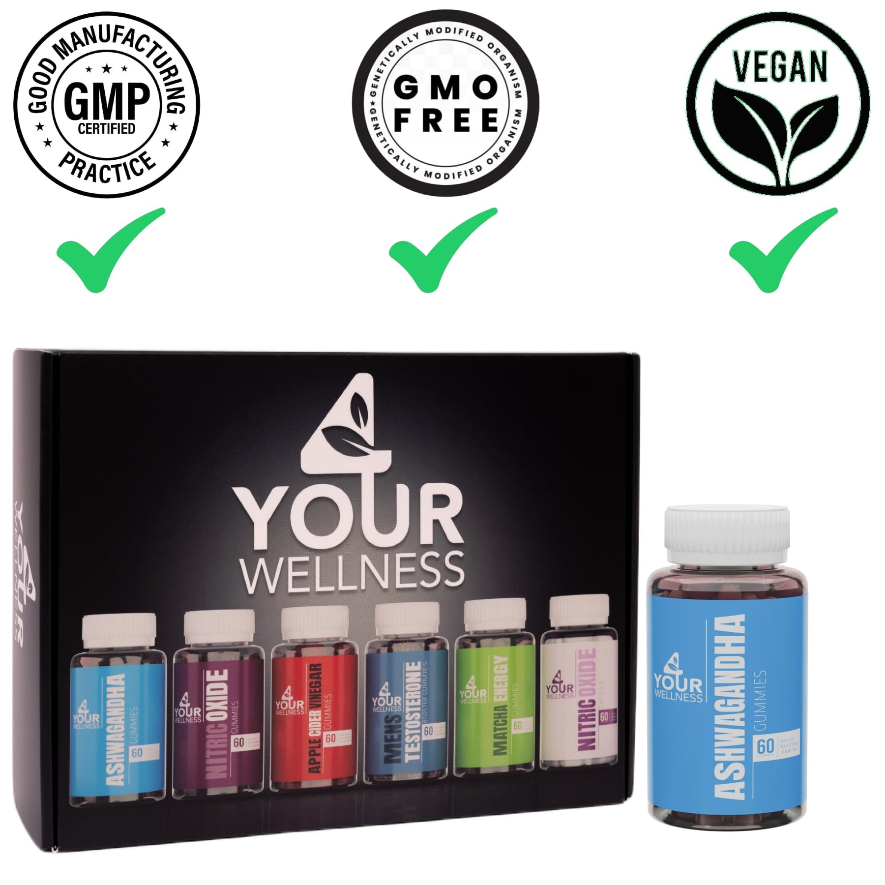 - Our Ashwagandha Gummies are Vegan, KSM-66, Non-GMO, Gluten-free & Kosher Certified Gelatin-free. Each bottle of our Ashwagandha contains 60 delicious gummies infused with top-quality ingredients such as Lion's Mane Mushroom, Ginger, Lemon Balm, and Vitamin-D