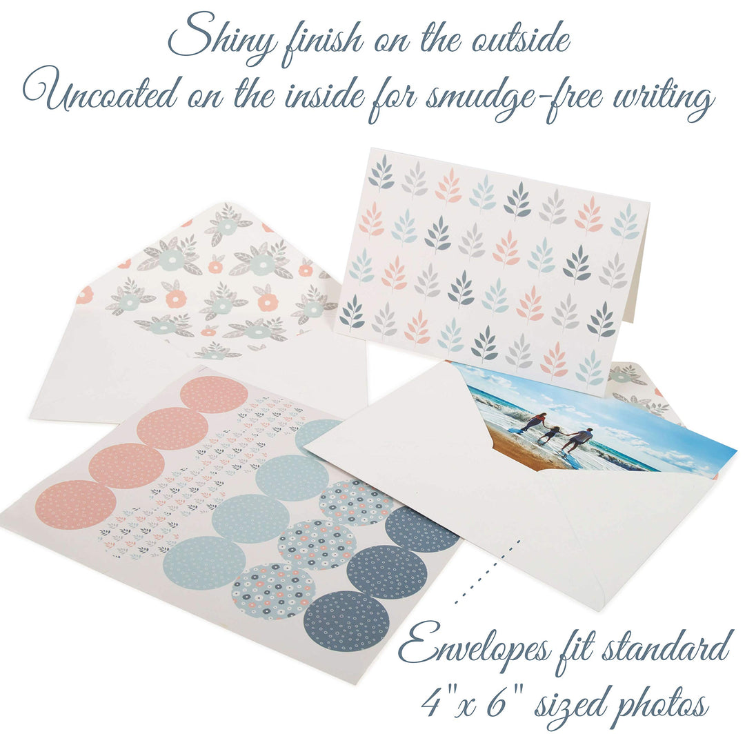- HASSLE-FREE ENVELOPES AND DOUBLE ADHESION: All envelopes are lined on the inside with a beautiful floral pattern. All envelopes are moisture sealed (lick-to-seal). For additional adhesion, we include peel and seal stickers in multiple designs to mix and match with the envelopes!