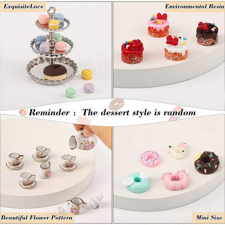 - Original Décor – 40 Pcs 1:12 Scale Dollhouse Miniature Kitchen Accessories Set Includes 15 Flower Pattern Porcelain Tea Cup 24 Mixed Pretend Cake Foods 1 Mini Three-Tier Cake Stand for Decor Supply (Fresh Style) by CHENGU