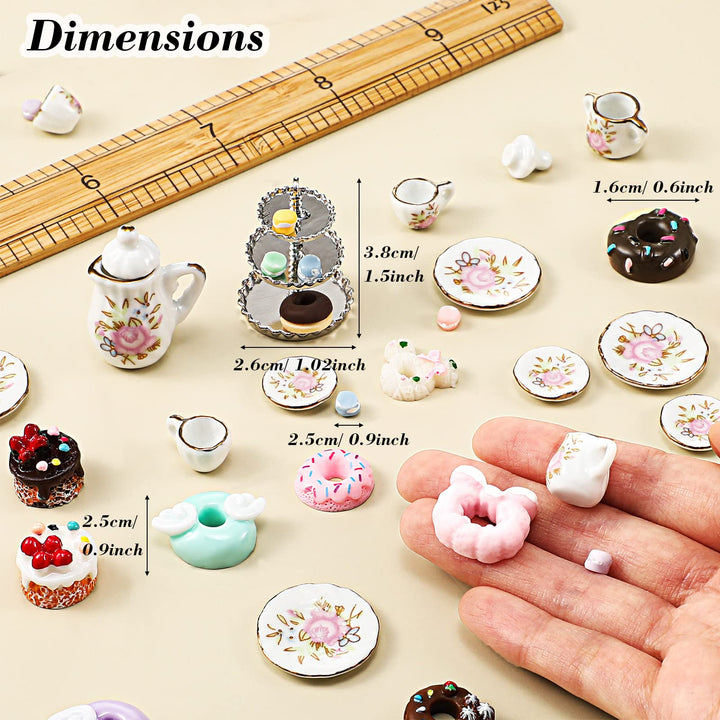 - Large quantity and rich combination: you will get 40 pieces of dollhouse miniature kitchen accessories, including 15 pieces of flower pattern miniature porcelain tea cups, 1 piece of mini kitchen three-layer cake stand, 10 pieces of mini food desserts, and 10 pieces of dessert charms donuts, and 4 pieces of miniature jam strawberry cakes with 4 colors, the rich combination is enough to satisfy your dollhouse decoration and pretend afternoon tea game needs