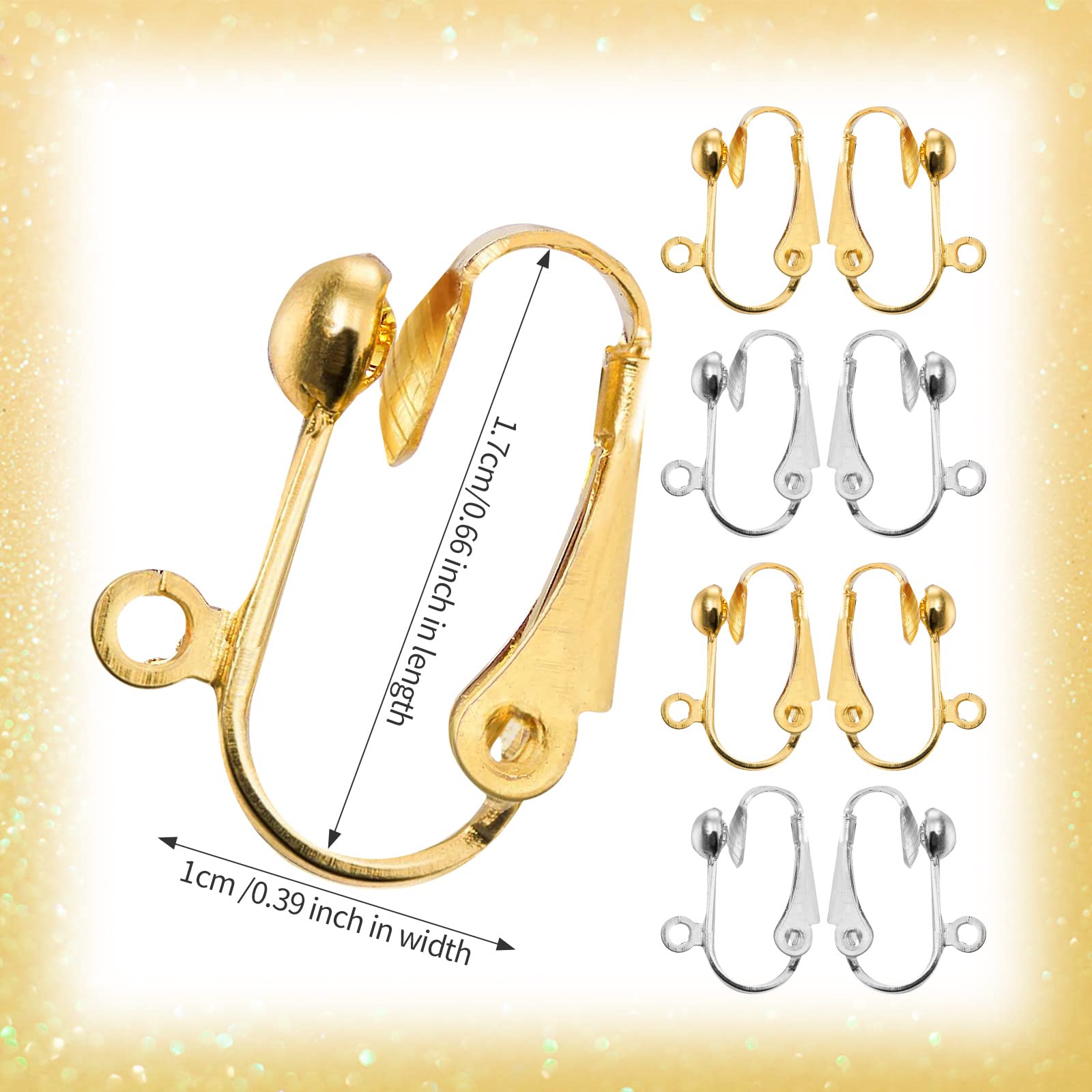 - High Quality ProductionThe clip on earrings are made of 100% brass, and plated with silver or gold. These clip on earrings for jewelry making is well made with bright color, don't break easy, the surface is smooth and do not tarnish or rust, lightweight, comfortable to wear, easy to adapt and can be applied for a long time. This earring conversions is the first choice for people who don't have pierced ears and want to wear earrings.