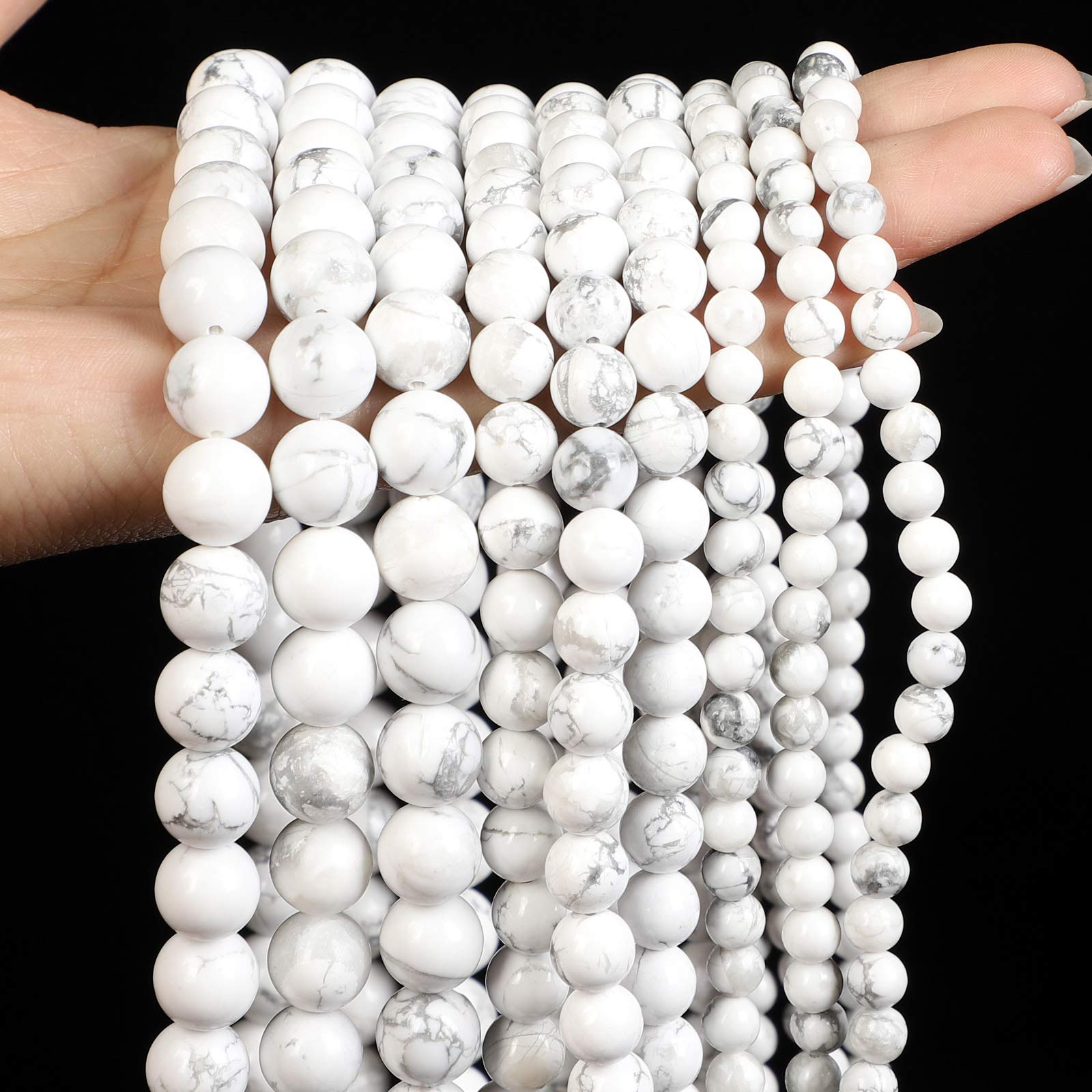 - Original Beads & Bead Assortments – 45pcs 8mm White Howlite Turquoise Round Loose Beads for Jewelry Making,Energy Healing Stone Beads,Enjoy DIY Making by PlusWin