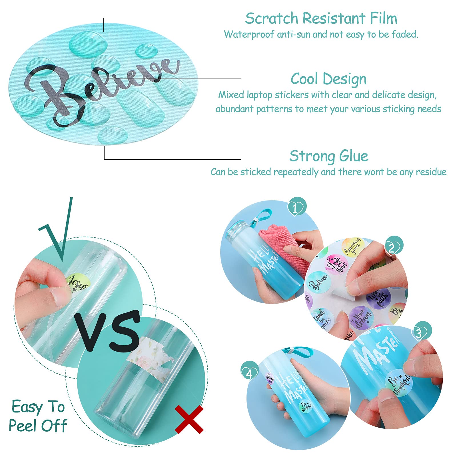 - Widely applicable: the round encouragement decals can be pasted on church, festival decoration or brochure, envelope packaging, laptops, water bottles, phones, desks, skateboards, luggage, books, etc., decorate your objects, stylish and exquisite