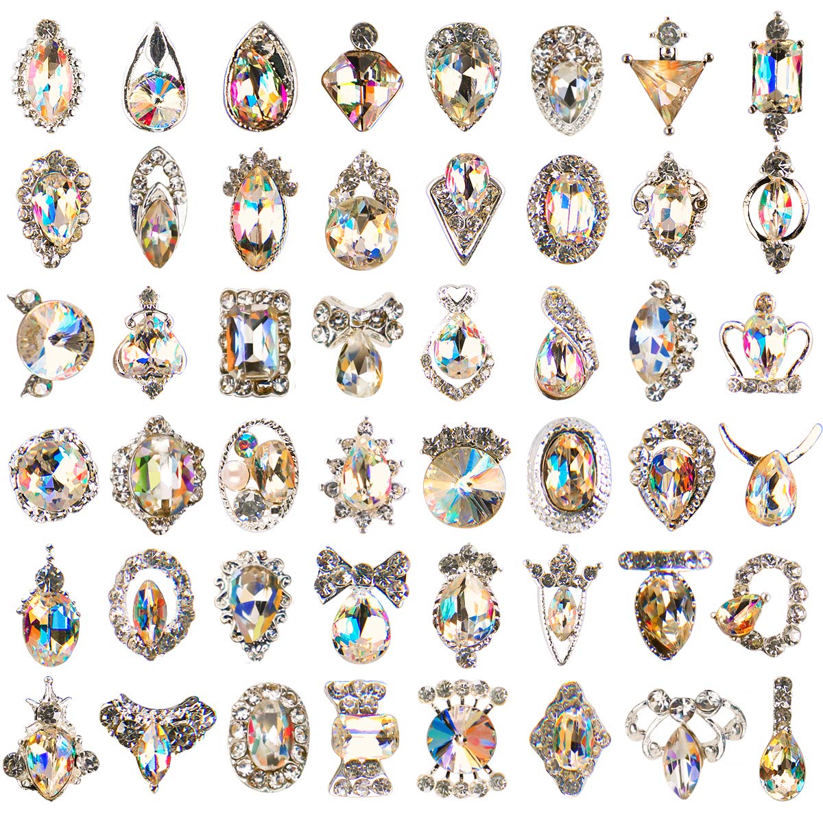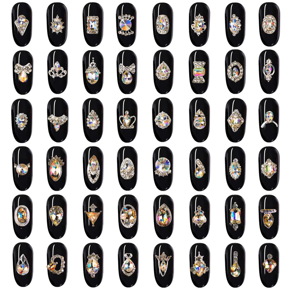 - Original Rhinestones & Decorations – 48pcs Rhinestones for Nails, Nail Diamonds Glass Crystal AB Metal Gems Jewels Stones for 3D Nails Art Decoration by YOOCUS