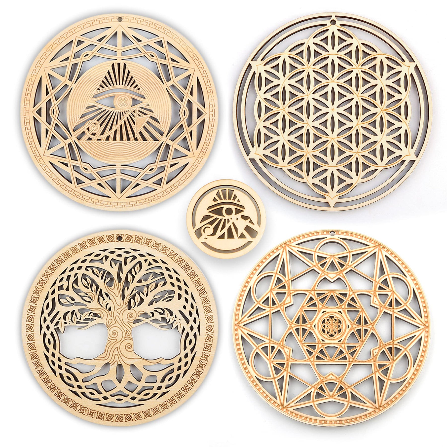 - Original Wall Sculptures – 5.31 Sacred Geometry Wall Art 4 PCS Set, (The Eye of Horus, The Flower of Life, The Tree of Life, Metatron's Cube) Crystal Grid Meditation Chakra Wooden Wall Art Yoga Decor Spiritual Gifts by Qallicon