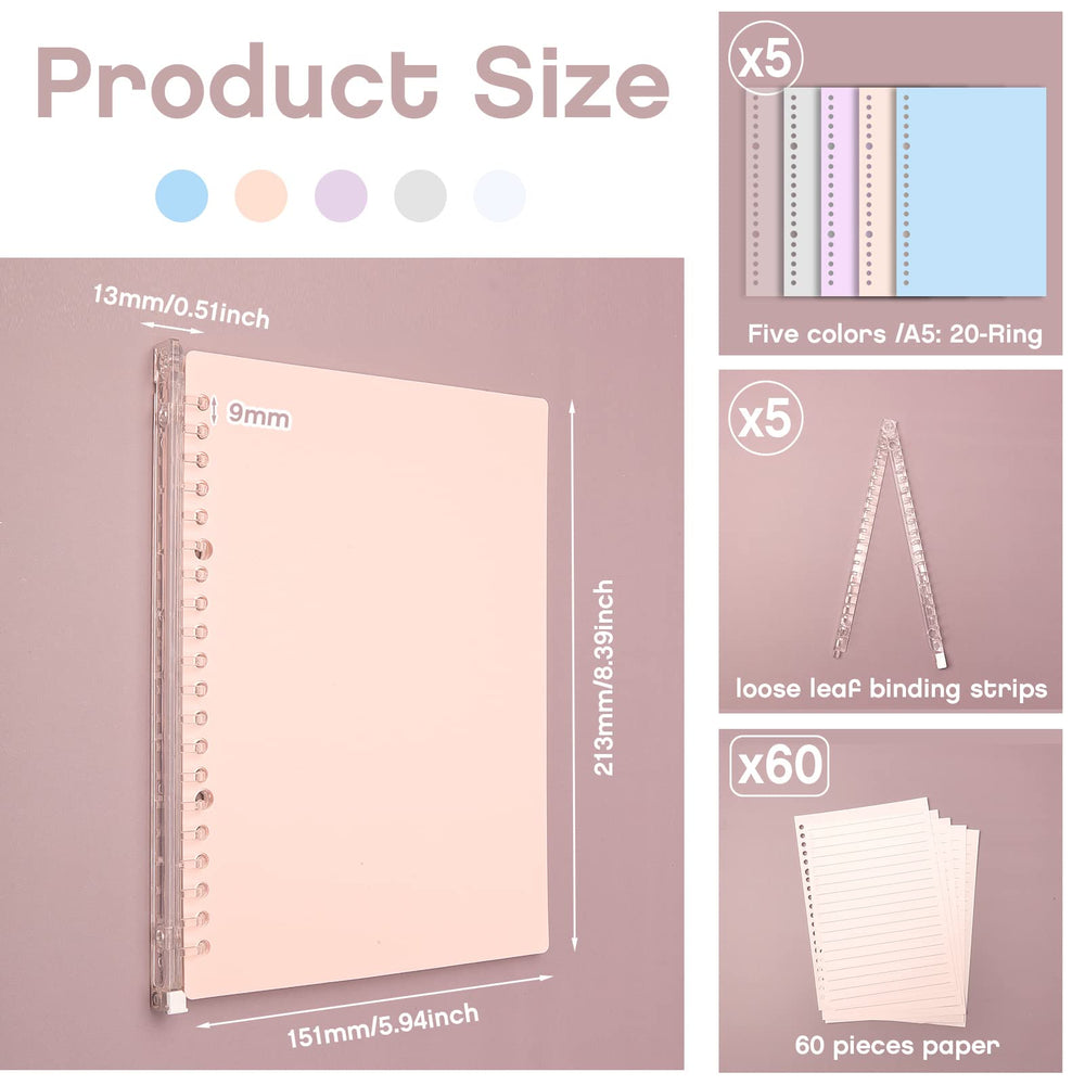 - Nice Combination: you will receive 5 sets of campus binder notebooks including 5 sets of covers, 5 pieces of loose leaf binding strips and 60 pieces of paper, nice combination and enough amount can satisfy your daily use and replacement demands