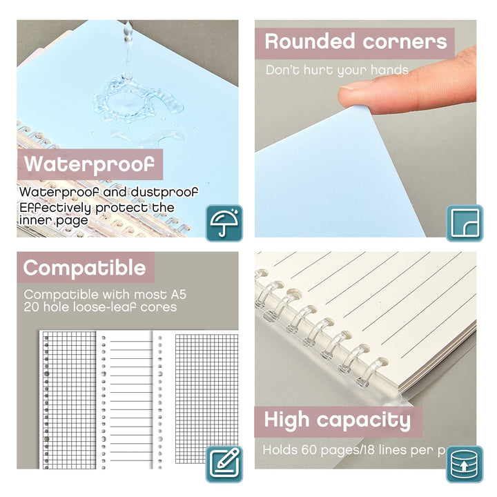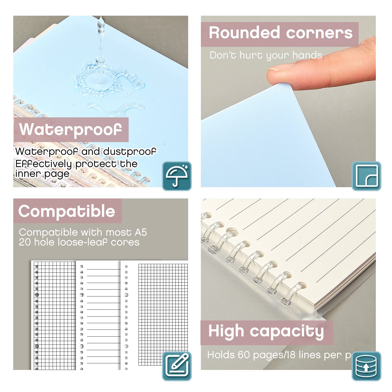 - Suitable Dimension: the campus notebook binder is about A5 size and suitable for most 20 rings A5 replacement paper, and can accommodate up to 60 pieces of loose leaf sheets, so you can use them with confidence